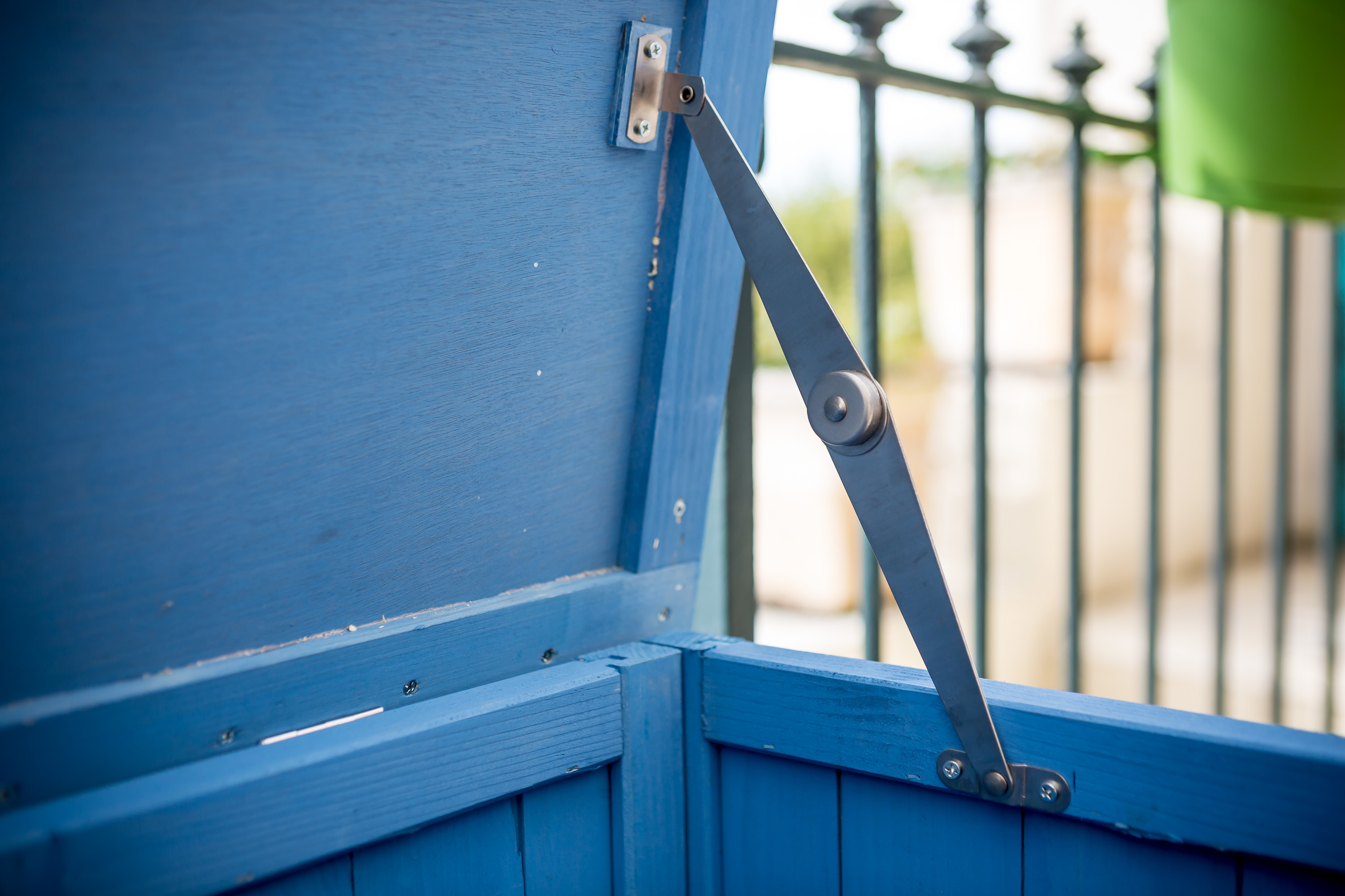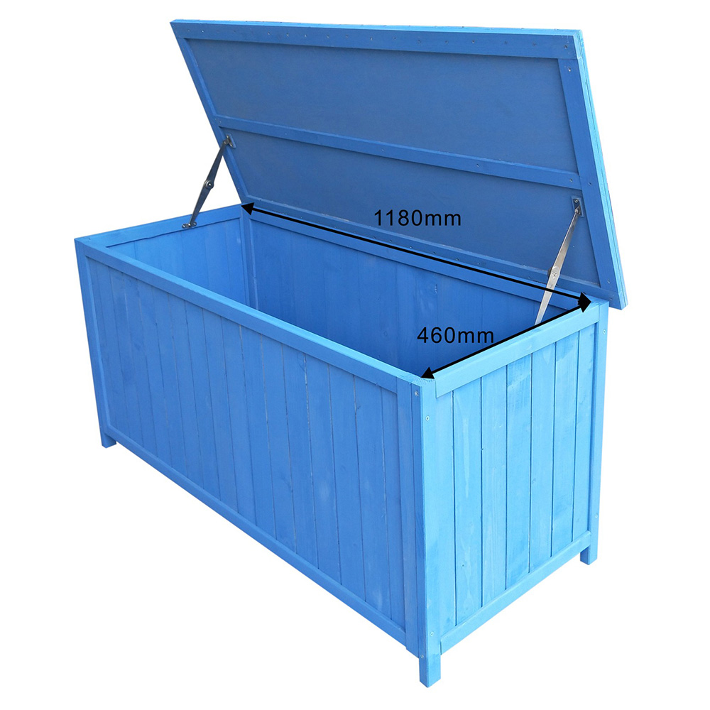 Optez pour le coffre de jardin BOX 1355 : un rangement en bois lasuré bleu (parois 10 mm) au volume utile de 0,29 m³, idéal pour coussins, outils et accessoires. Son couvercle bois assisté par 2 compas supporte jusqu’à 15 kg et protège efficacement vos affaires ; la peinture résistante à l’eau simplifie l’entretien. Produit FSC 100%, RoHS, livré en kit à visser avec notice. Dimensions : 127 × 55 × 60 cm.