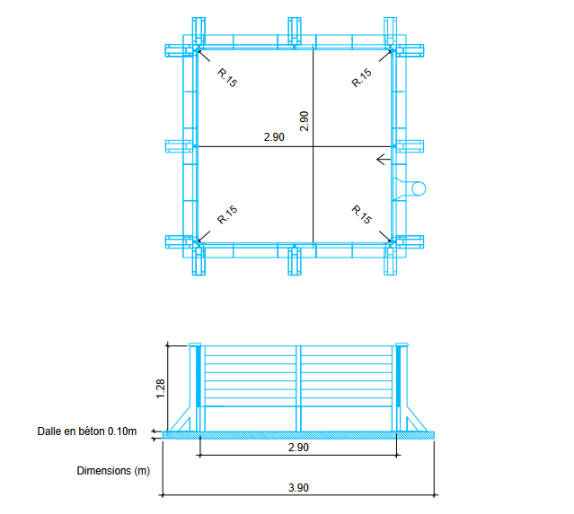 Découvrez la piscine en béton Naturalis R00, aux dimensions compactes de 324 x 324 x 143 cm, avec un design carré et un élégant aspect bois teinté. Cette piscine combine robustesse et esthétique, s'intégrant harmonieusement dans tout type de jardin.