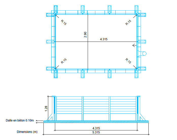 Sa structure en béton, incluant des traverses robustes et des piliers, est renforcée par une margelle en béton teinté ainsi qu'un support intérieur de 4 mm pour une stabilité optimale.