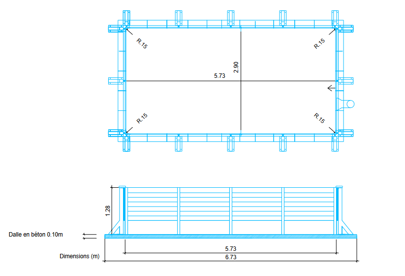 Sa structure en béton, incluant des traverses robustes et des piliers, est renforcée par une margelle en béton teinté ainsi qu'un support intérieur de 4 mm pour une stabilité optimale.
