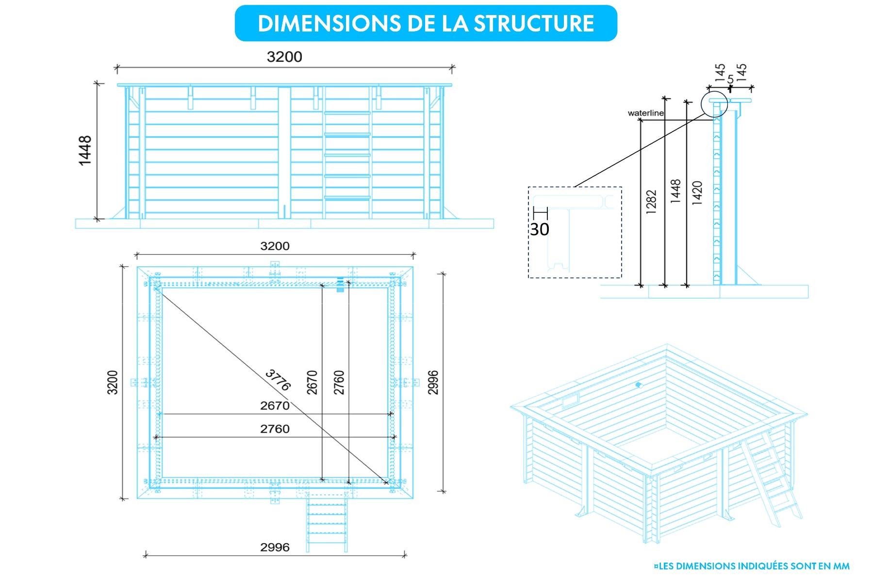 Offrez-vous un été d’exception avec la piscine bois SPARK 320x320x145 cm, une exclusivité alliant design, robustesse et confort.
